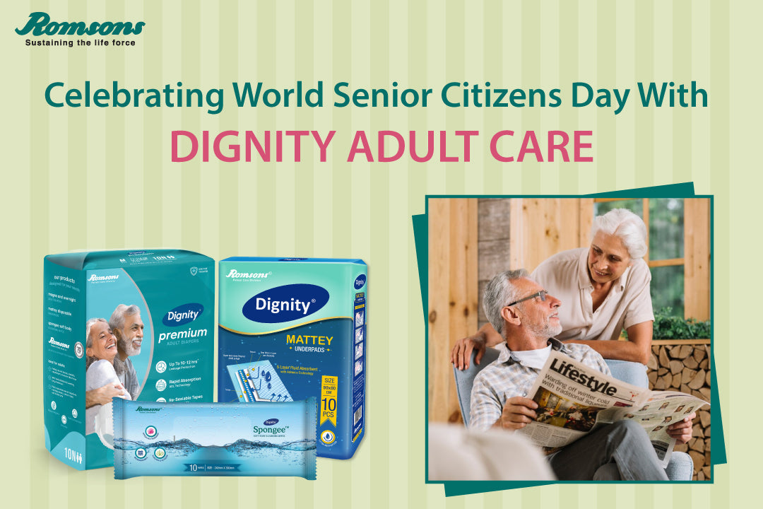 On this World Senior Citizens Day, let us celebrate the remarkable individuals who have enriched our lives with their experiences and wisdom. Dignity Adult Care from the House of Romsons stands as a beacon of support, ensuring that our senior citizens can age gracefully, comfortably, and with Dignity. By providing a wide range of quality products designed to address their unique needs, Dignity Adult Care becomes a valuable ally in the journey of ageing, reflecting the care and respect our seniors truly deserve. Live with Dignity, Live With Joy.