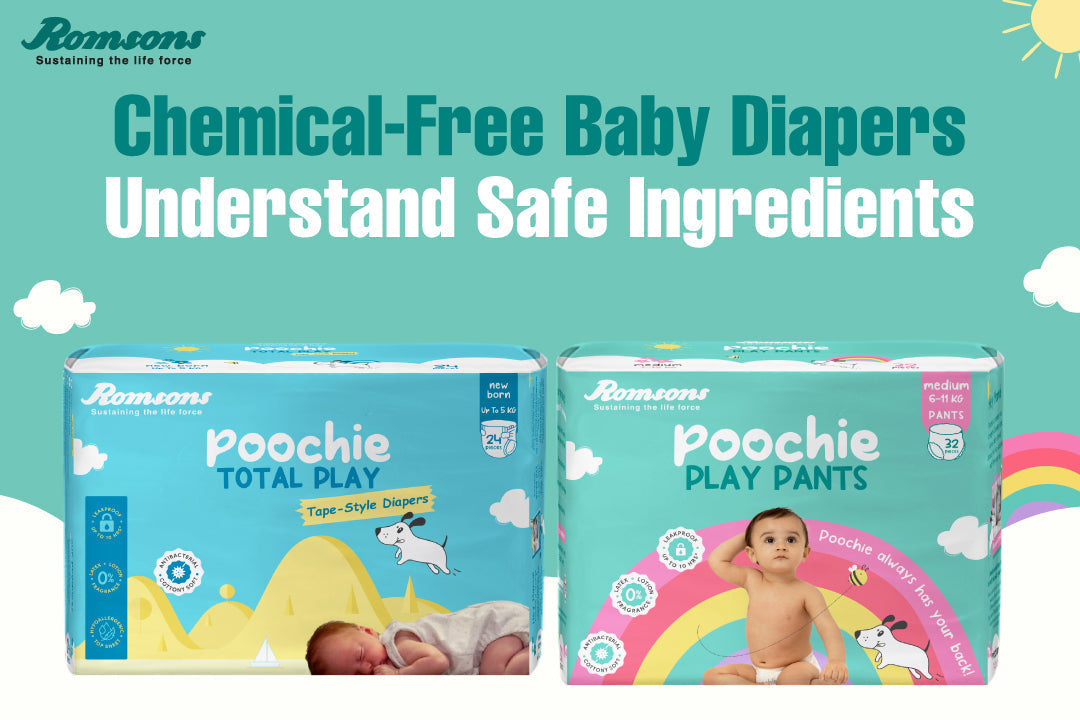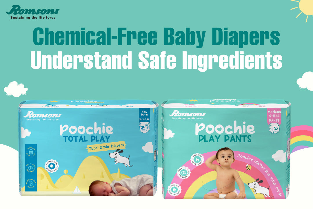 That’s where chemical-free baby diapers come in — designed to be gentle on your baby’s sensitive skin while still providing high absorbency and leak protection. Brands like Romsons Poochie Play Pants (Baby Diapers) and Poochie Total Play (Tape-Style Diapers) are leading the way by combining soft, skin-friendly materials with innovative design for the ultimate protection — naturally.