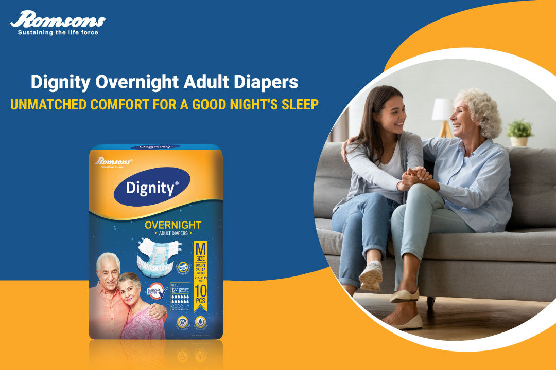 Living with incontinence should not hinder anyone's quality of life or prevent them from enjoying restful nights. If you or your loved ones are in need of reliable and comfortable adult diapers, give Dignity Overnight Adult Diapers a try, and experience a new level of comfort and confidence. These diapers empower users to live their lives to the fullest without the limitations that incontinence can impose. Under the umbrella of Romsons Group, Dignity Overnight adult diapers have become one of the best adult diapers in India and emerged as a game-changer in the market of incontinence products, enhancing the quality of life for those in need and reaffirming their dignity.