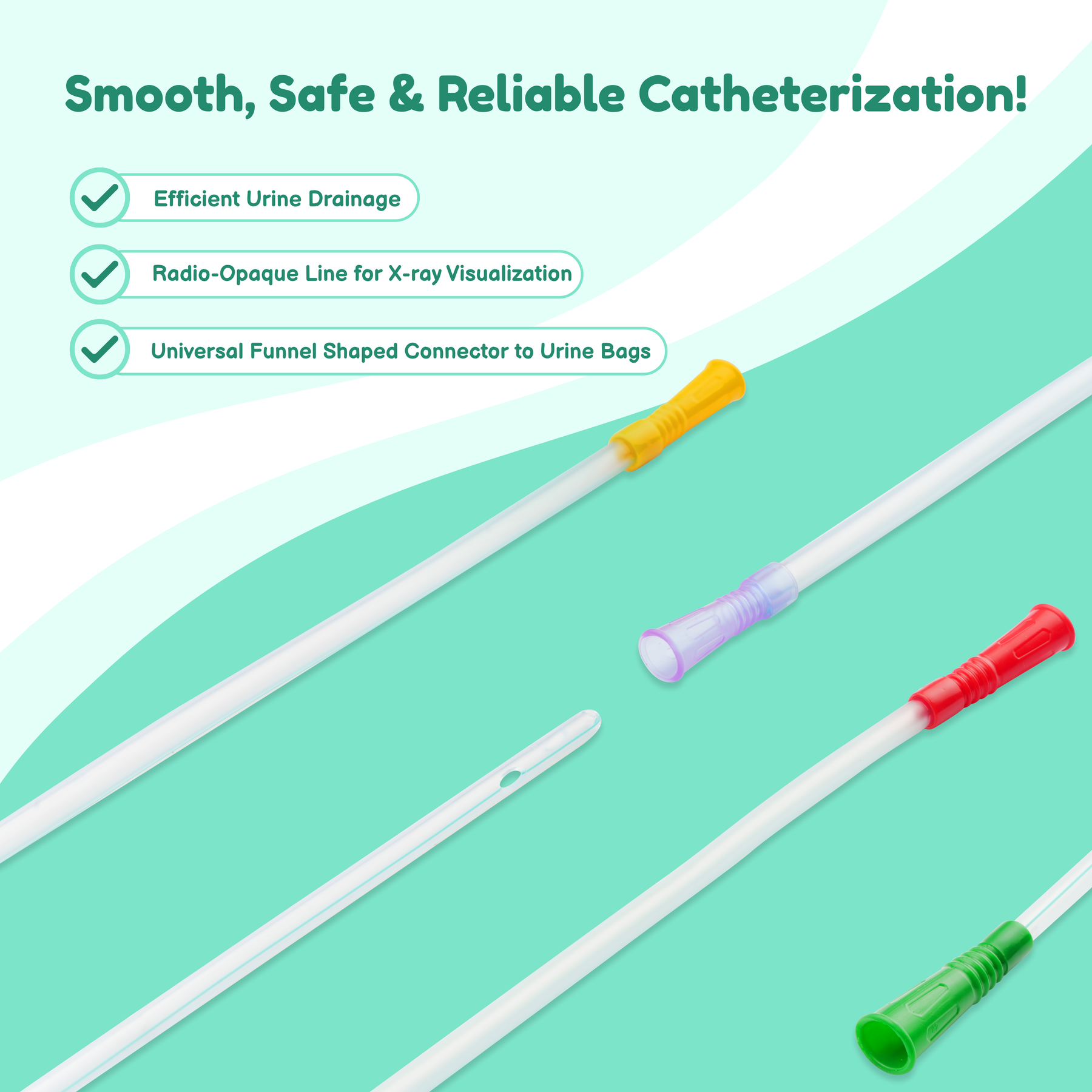 - Coned distal end for atraumatic catheterization.