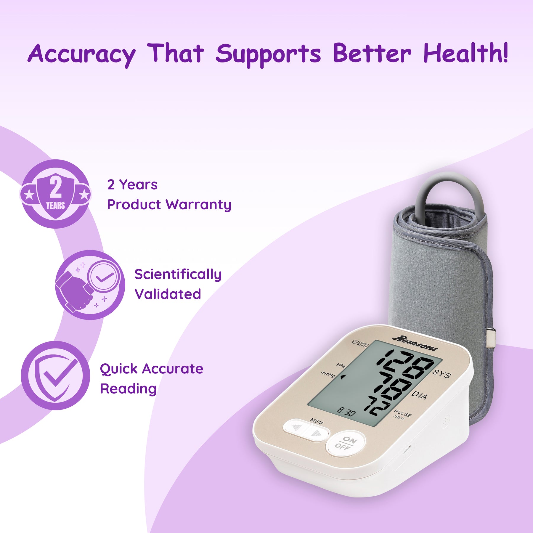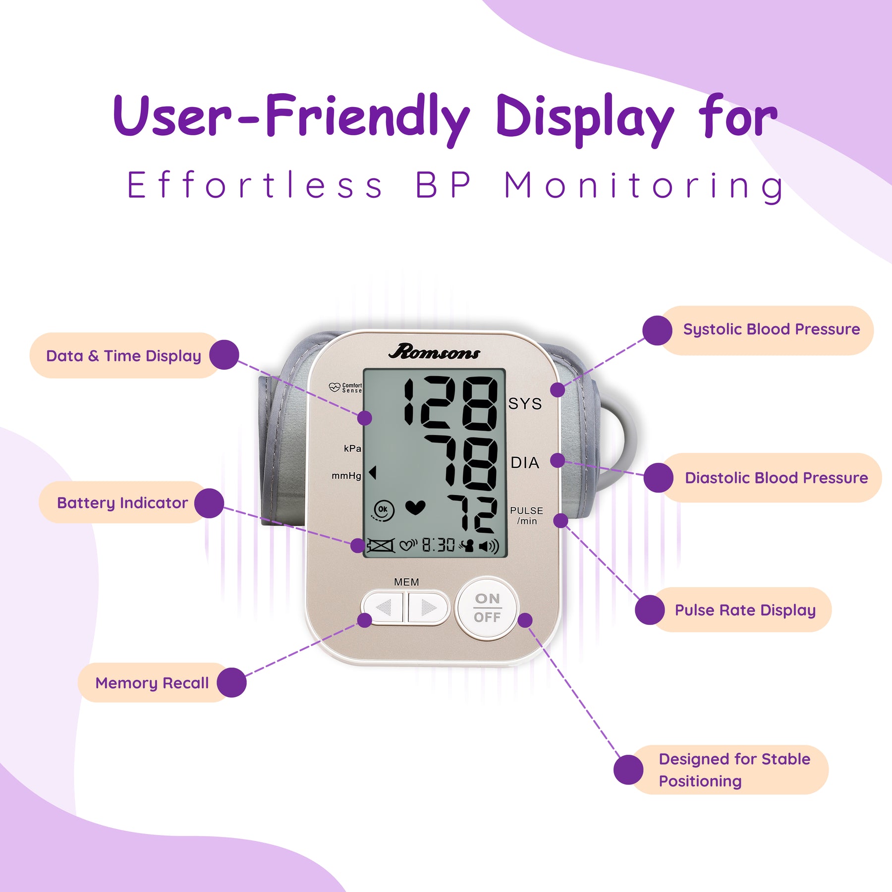 Romsons DIGI CHECK is a digital blood pressure monitoring device designed to provide quick, and accurate readings. The large digital display makes it easy to read the results, and the user-friendly interface ensures effortless operation. With its advanced technology, this monitor provides precise readings and is ideal to be used at home or in a clinical setting