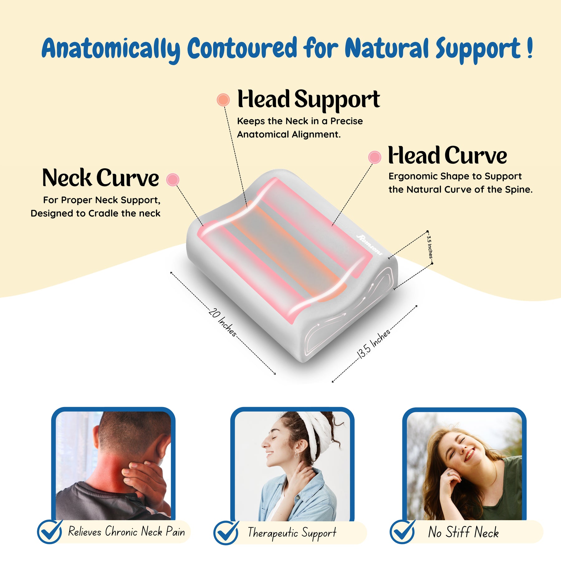- Anatomically Designed to fit the natural curves of the neck and provide utmost comfort.