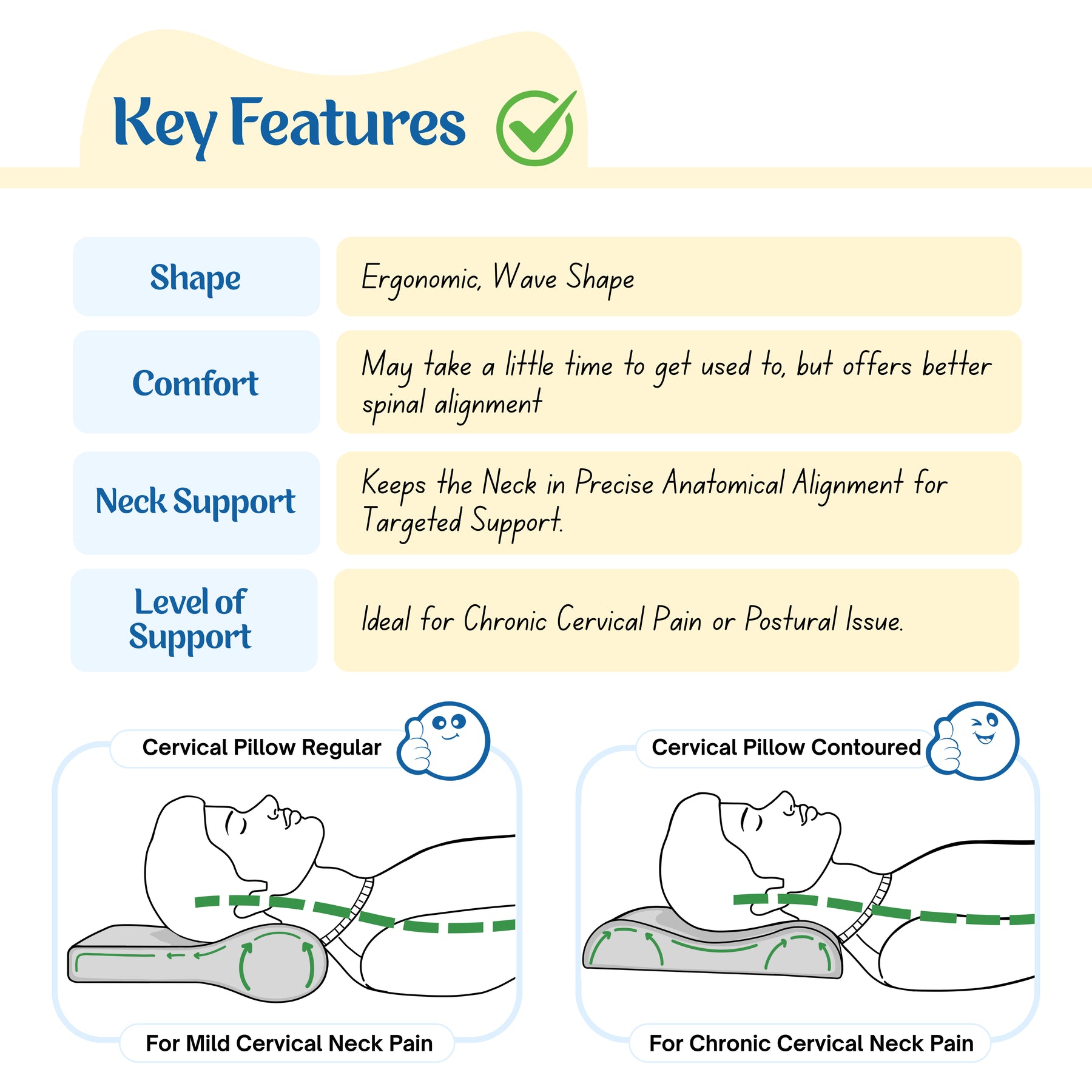 - It relieves cervical pain while you sleep. It is a boon for those seeking orthopedic support.