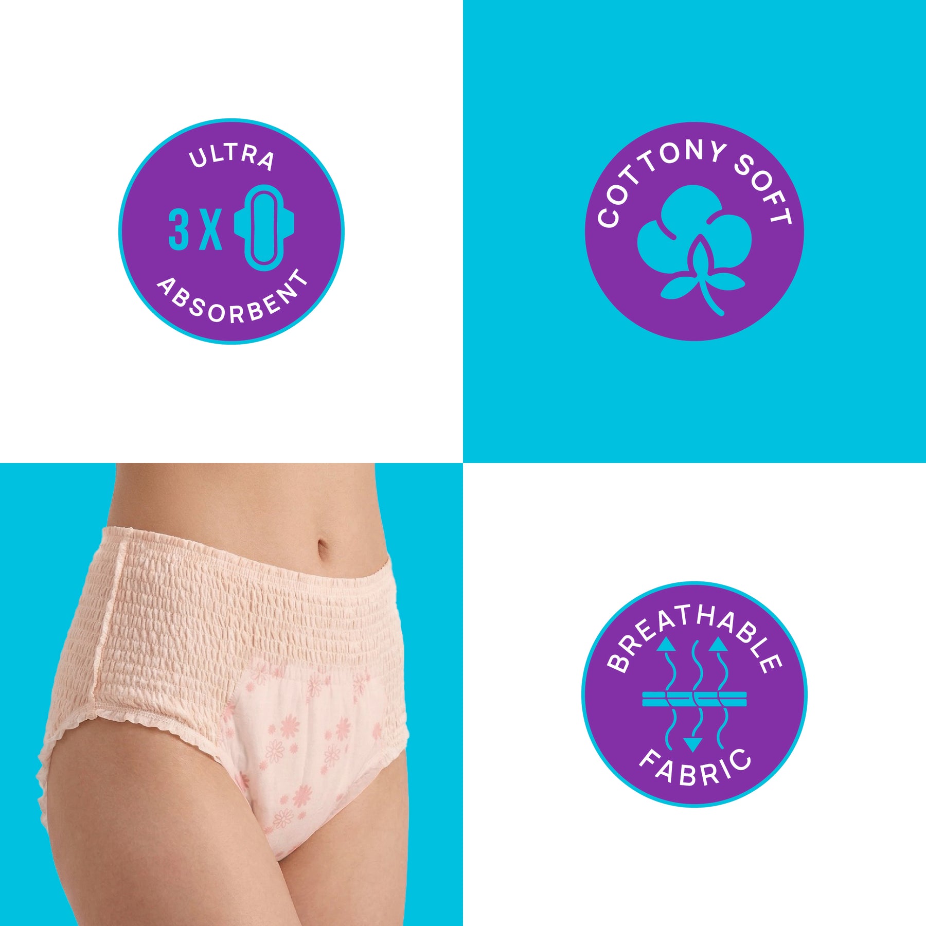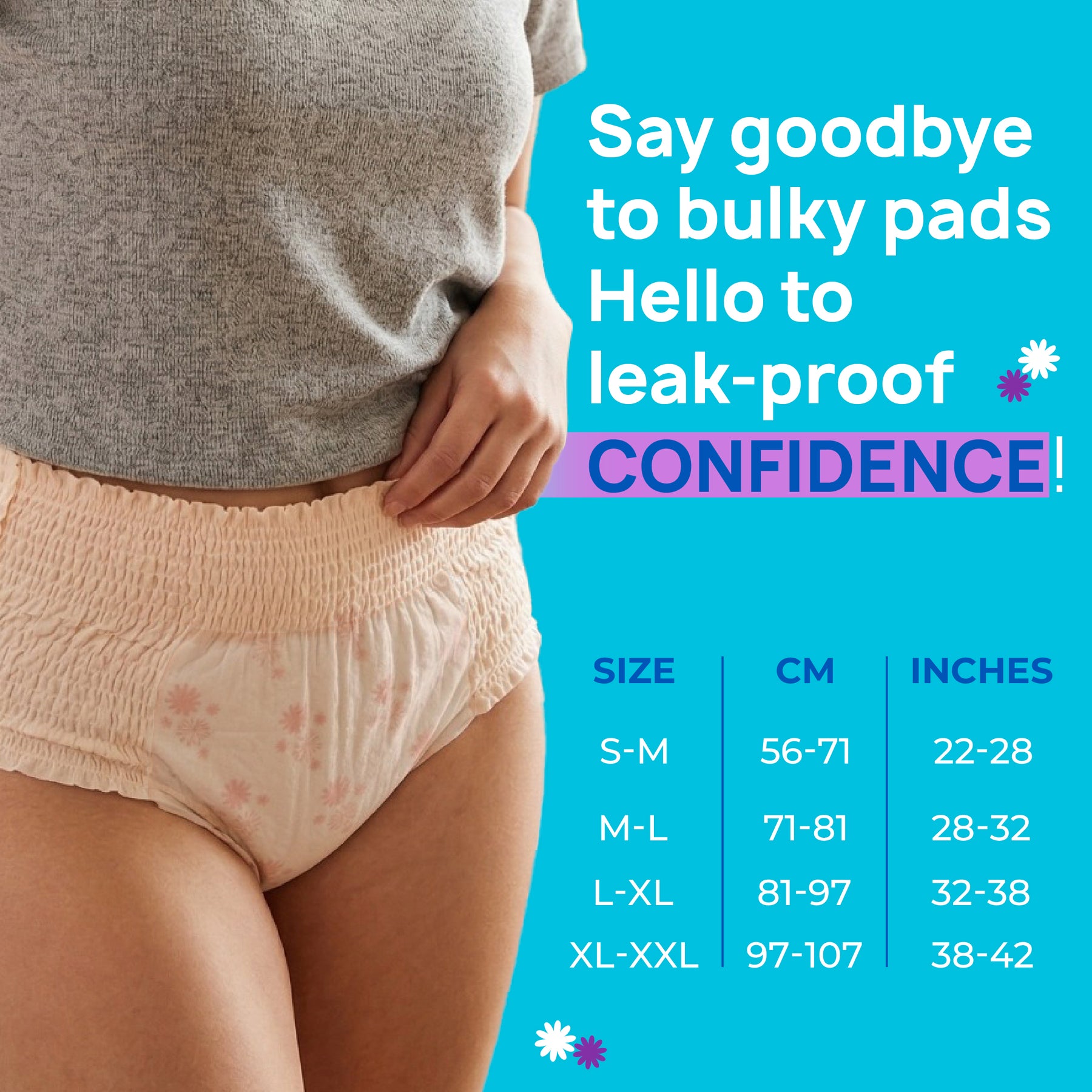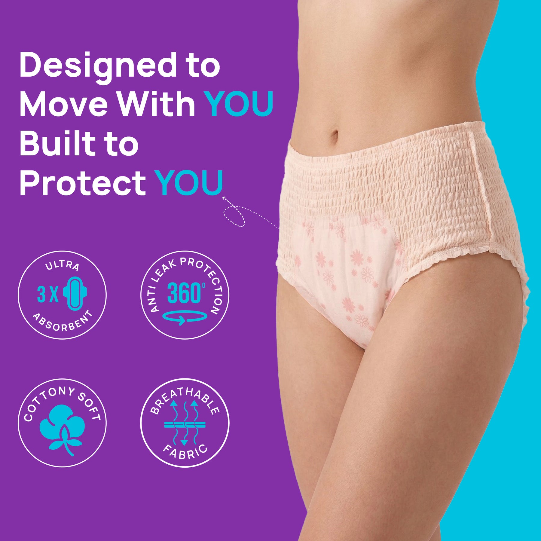 • 360° Anti-Leak Protection: Stay confidently dry all day long with 360° Anti-Leak Protection that keeps fluid in, no matter how active you are - perfect for workouts, daily routines, and overnight period panty.